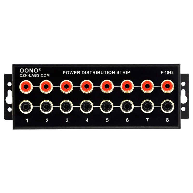 - F-1043 DC power distribution outlet strip are heavy-duty power distribution strip. 8 position + and - banana jack output.