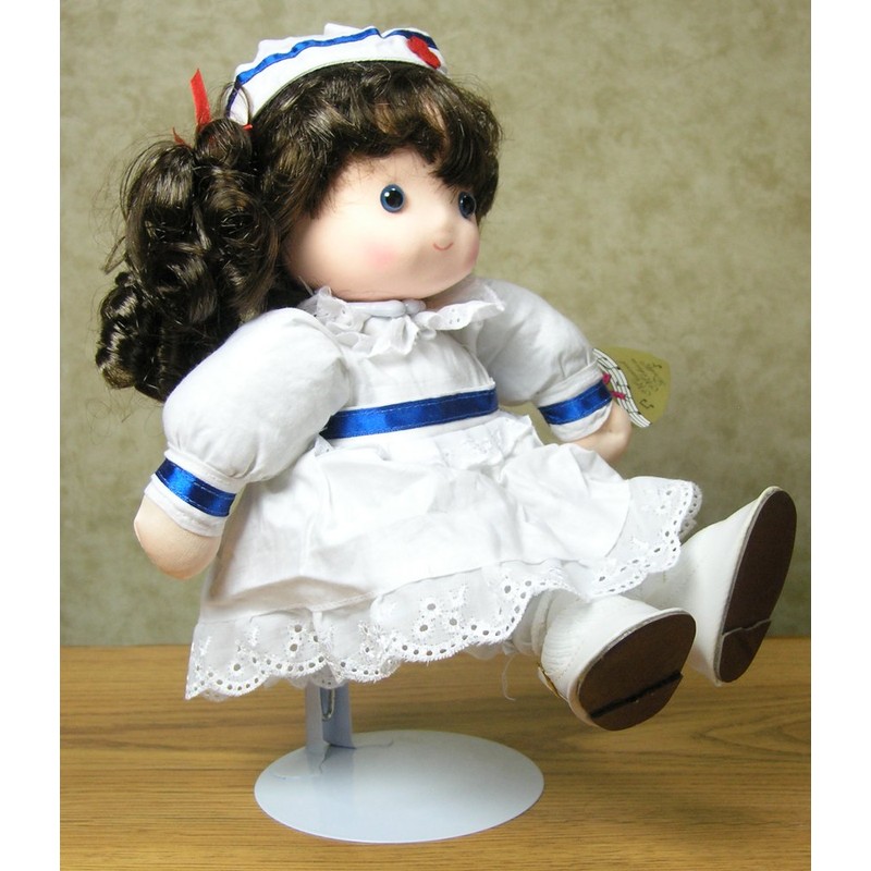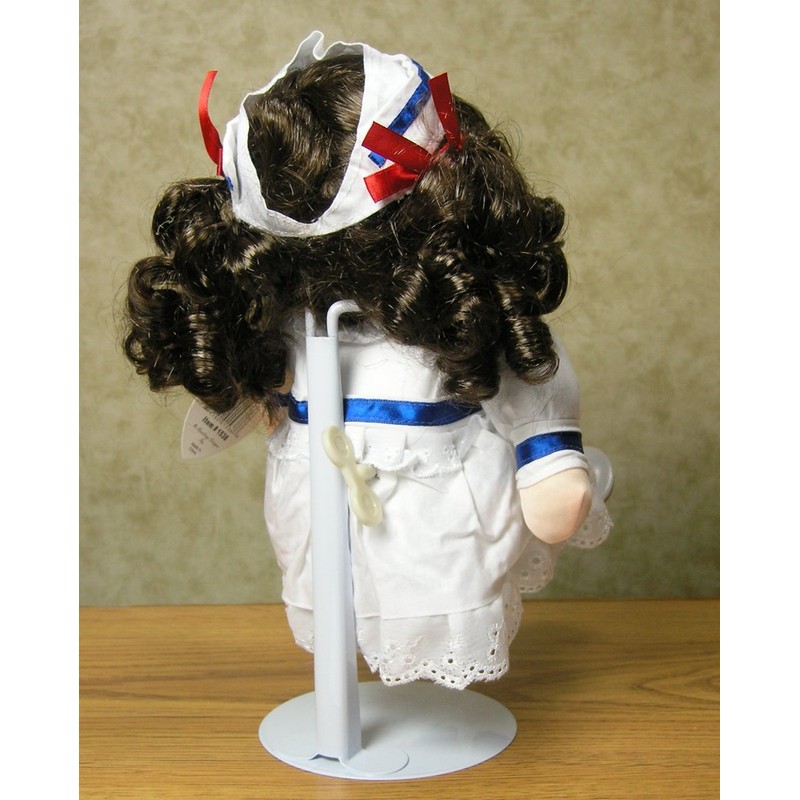BANBERRY DESIGNS Doll Stands Set of 4 White and Vinyl 7" Doll Holders Each Stand Expands from Approximately. 7" to 12"