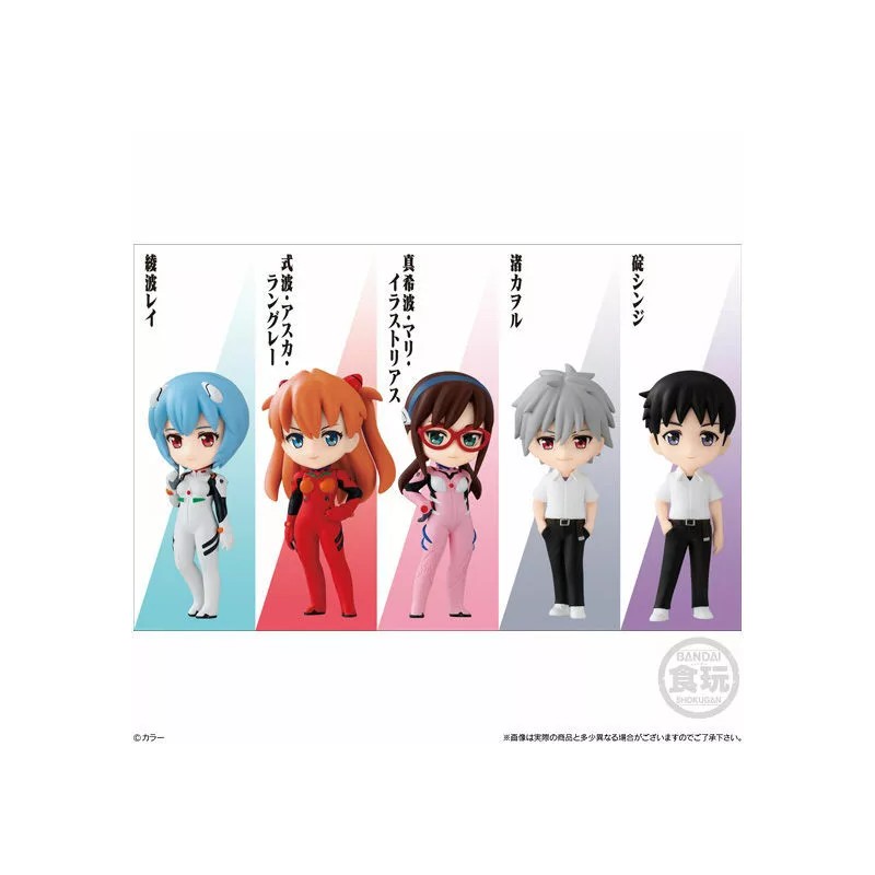 - Descriptions: The main characters from the Evangelion anime series have been chibi-fied! These adorable figures stand about 2 inches tall on their individual bases—the perfect size for any anime figure collection.