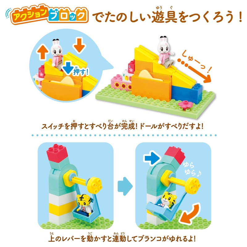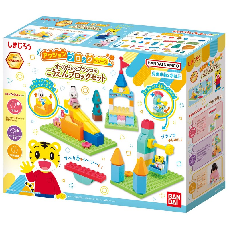 BANDAI Shimajiro Action Block Series, Sliding and Swing's Koen Block Set (Bonus: Shimajiro Block Doll Included)