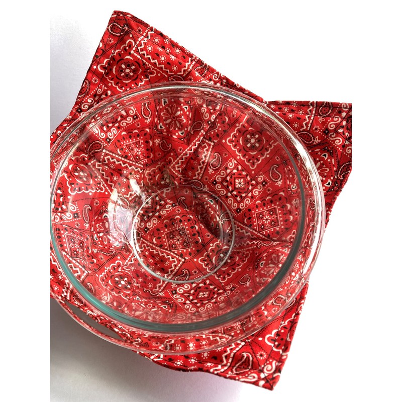 Bandana Cotton Print - Set of 2 Bowl Cozies aka Microwave Hot Pads aka Bowl Oven Mitts - 8.5 inches for up to 8 inch bowls (Set of 2 YELLOW Bandana)