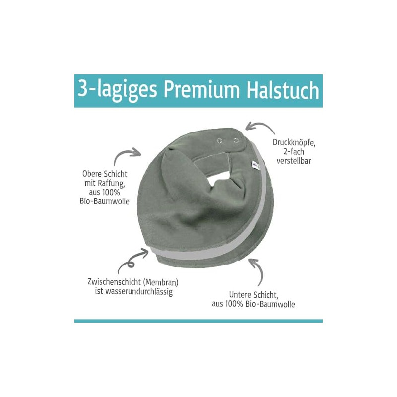 - Neckerchief for babies and toddlers of approx. 4 months to 3 years (up to 28 cm neck circumference) with 2 press studs, adjustable size. Stitched gathered on the sides