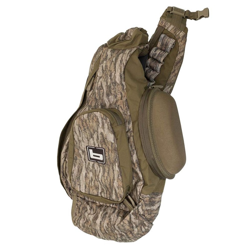 The Banded Nano Sling Back Pack. The best bag you’ll never know you’re wearing. So light, so comfortable and so accessible. Often times while waterfowl hunting, we find ourselves in situations that require us to place our bags in undesirable locations, due to the presence of water. The Banded Nano Sling Pack solves for that. Designed to be used with waders, your necessities will be within arms reach, all throughout the hunt. And, with its ergonomic design, you’ll hardly even notice its there, until you need it. Ideal for hunters who walk-in, and stand/sit in the water throughout the hunt. Hunting Examples: Timber, pothole and marshes where water runs up to the edge of surrounding vegetation, boat hunters with limited storage space.Nano Sling Back Pack Features:- Bandolier style pack slides around to the front for easy compartment access. - Adjustable shoulder and waist strap accommodates layering. - Shoulder strap shell loops. - Large zippered main storage compartment with technical storage management. - 6 Dedicated Storage compartments. - Integrated zip-locked dry bag. - Zippered accessory pouch. - Zippered hard case sunglass pouch. - Elastic water bottle pouch.