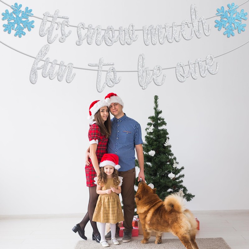 Bandera plateada con purpurina «It's Snow Much Fun to be One Banner», copo de nieve One/Winter Onederland, temática de copo de nieve de invierno para el primer cumpleaños y baby shower