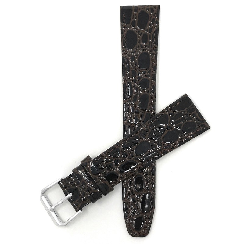 Bandini Italian Leather Watch Strap - Brown - Crocodile Pattern - Slim - 18mm Watch Band