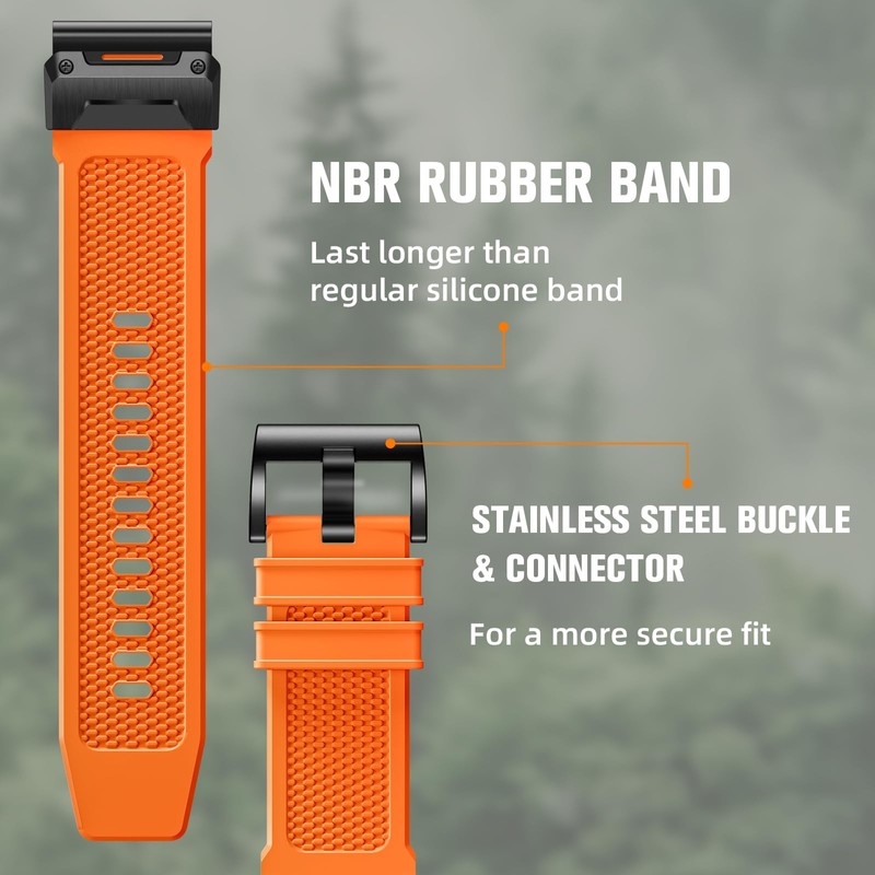 - 【Premium Material】Compatible with Fenix 5x watch band, these bands are made of premium quality durable silicone rubber. They are wrist-friendly, comfortable, waterproof and lightweight for all day comfort