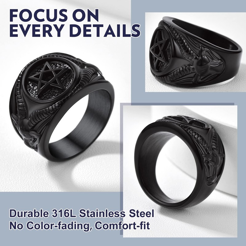 Bandmax Men Baphomet Goat Head Rings Stainless Steel Satan Pentagram Rings Black Punk Gothic Rings Baphomet Jewelry
