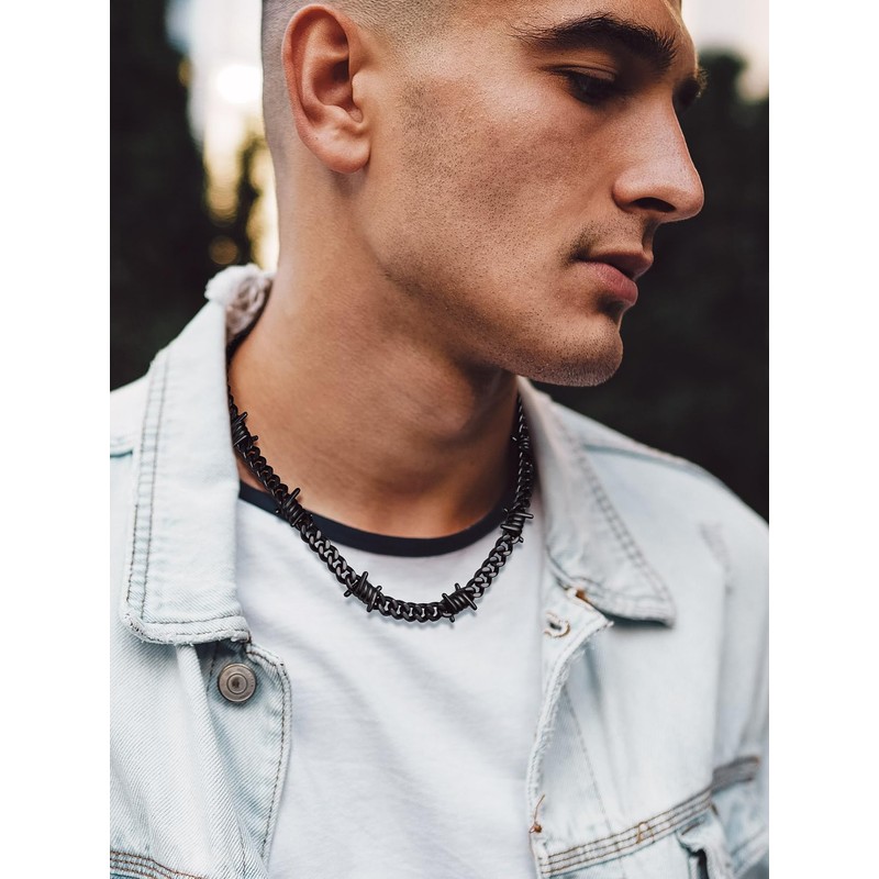 Bandmax Mens Black Barbed Wire Necklace 18 Inches Chunky Chain Choker for Women Mens Punk Biker Gothic Rock Chain Necklace Jewelry Gift
