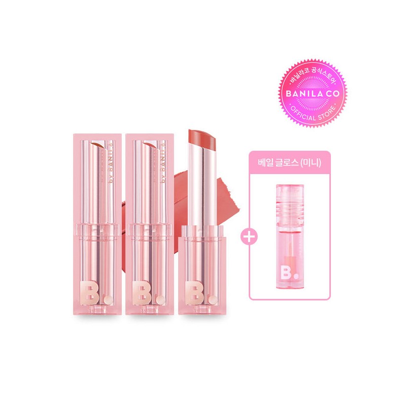 Banila Co Glow Veil Lipstick Duo SET, BE01 Cozy Beige + OR01 Juicy Fizz