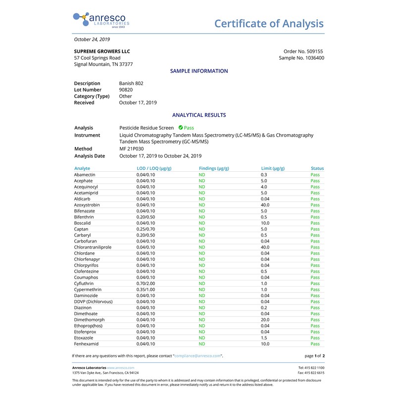 - BANISH is fully registered and positioned for all sectors of agriculture. Under warm conditions, BANISH will naturally biodegrade leaving minimal to no residue. Perfect for vegetables, fruits, flowers, plants, trees, medical cannabis/marijuana etc. Click “Add to Cart” to order BANISH now. At Supreme Growers, we believe that quality starts at the soil. Our mission is to equip growers with the knowledge and resources to make self-sustainable growing economically viable. That’s our commitment