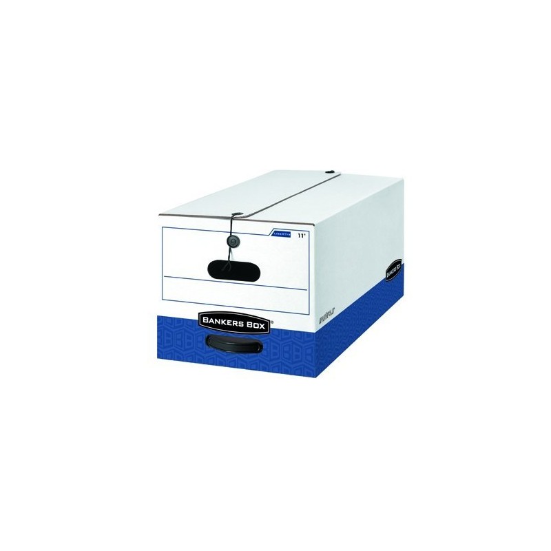 Bankers Box FEL00011 Liberty Storage Boxes, String amp; Button, Letter Size, 10quot;H x 12quot;W x 24quot;D, White amp; Blue, 12 Per Carton by Bankers Box