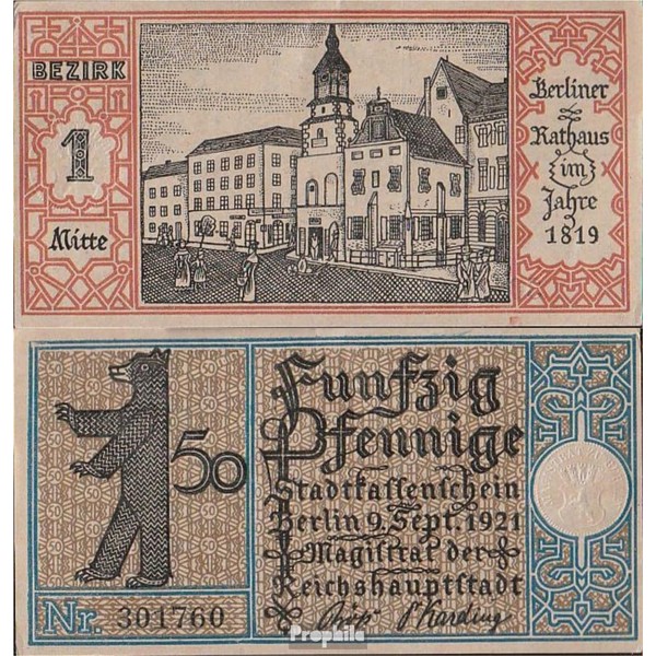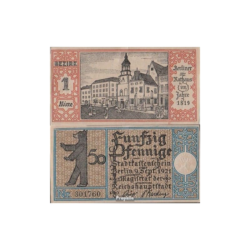 Banknote Berlin Notgeld: 92.1.1 Notgeld the City Berlin, District: 1. Mid uncirculated 1921 50 Pfennig Berlin (money for collectors - no means of payment)