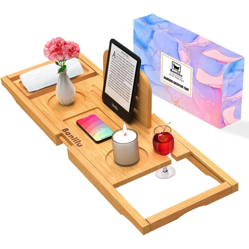 - GIFT CHOICE - The bamboo bath tray is your perfect gift choices as Valentine's Day, Mother’s Day, Thanksgiving, and Wedding and so on; Share and complete your family, friend a relaxing experience; It’s an addition to your master bathroom and match the aesthetics