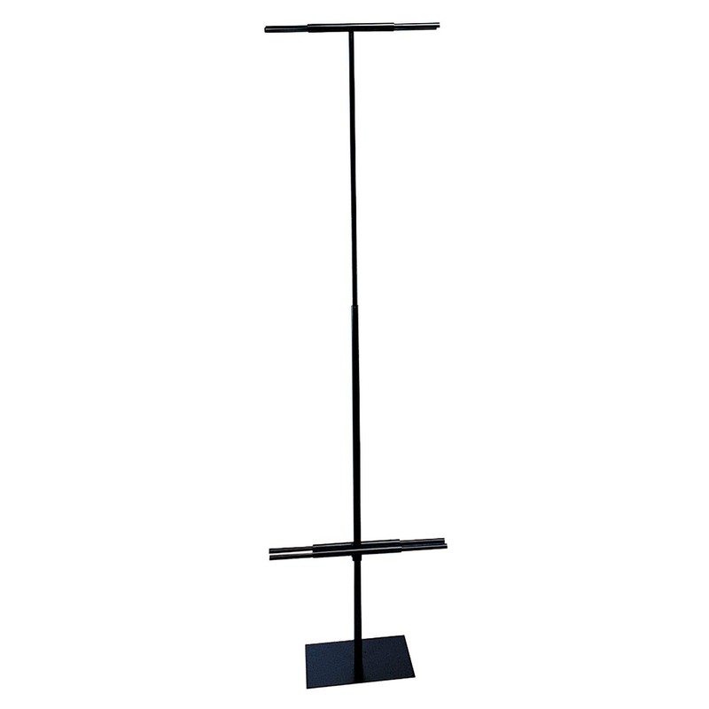 Use our Banner Stand to display vertical signage for your next sales promotion. The stand can hold one or two 2'W x 6'L banners back to back. The stand is constructed from durable metal with a black powder coat finish. The stand can adjusts in height to accommodate other banner sizes. Additional features include two weighted rods that hold the sign in place once it is installed.