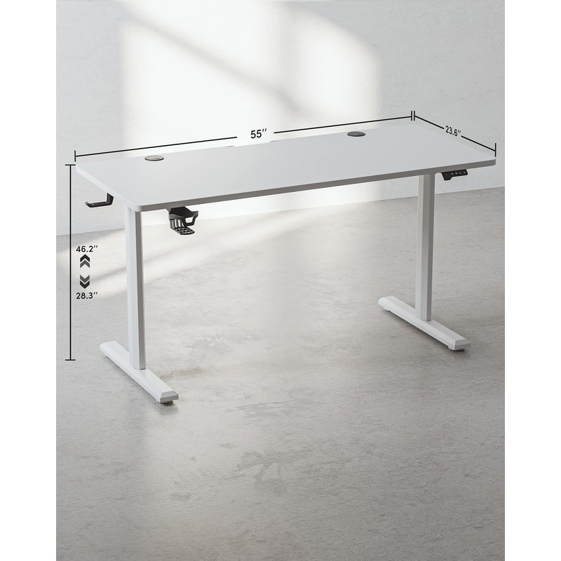 BANTI 55"x24" Standing Desk, Electric Stand up Height Adjustable Home Office Table, Sit Stand Desk with Splice Board, White Frame & White Top