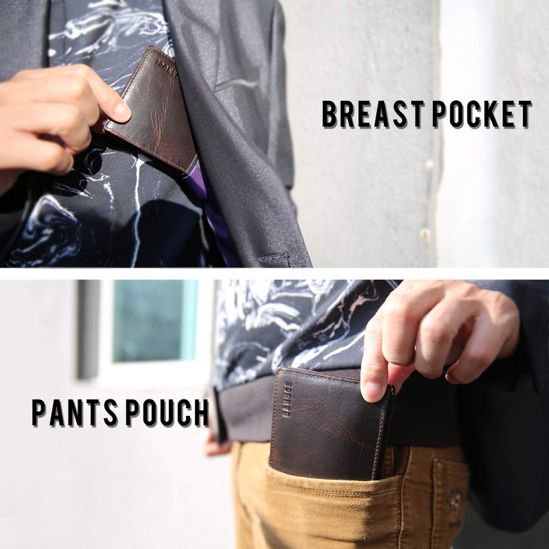• This pocket-sized leather wallet is slim and compact in design. You can easily toss it into your pocket and take it out anytime needed.