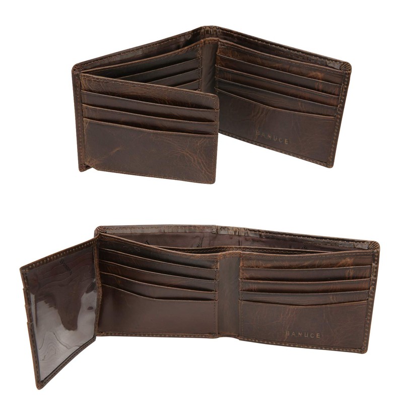 Banuce Full Grain Leather Men's Bifold Wallet with Card Holder Brown