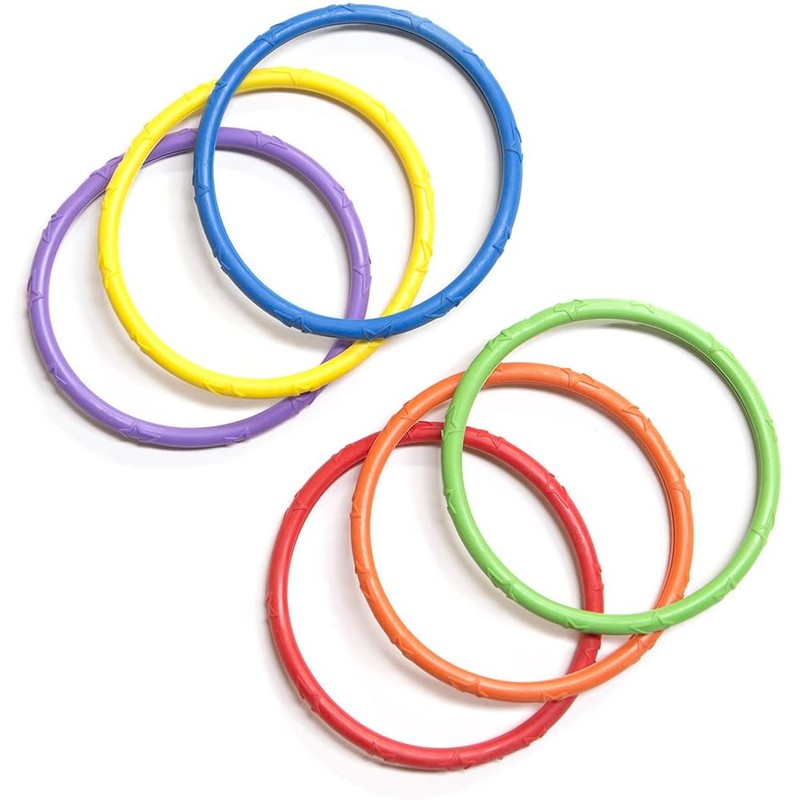 - 6 colorful rings are easy to see underwater