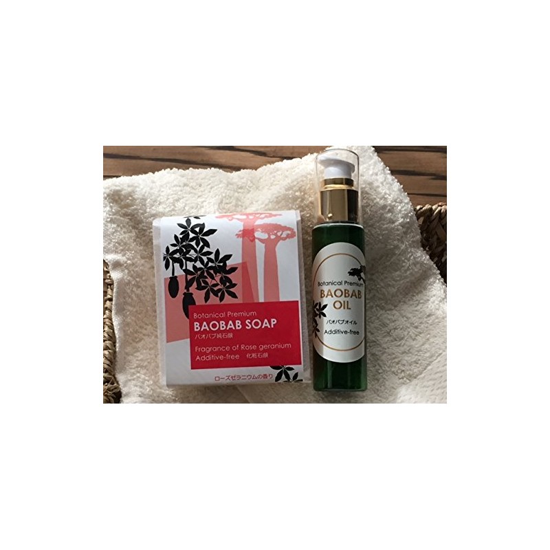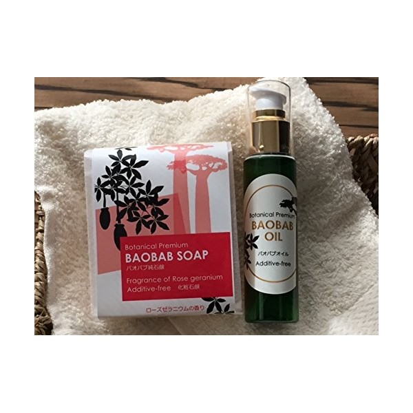 - Baobab Pure Soap (Rose Geranium Scent) BOTANICAL PREMIUM 1.6 oz (130 g) and BOTANICAL PREMIUM 1.7 fl oz (50 ml) of Baobab Oil
