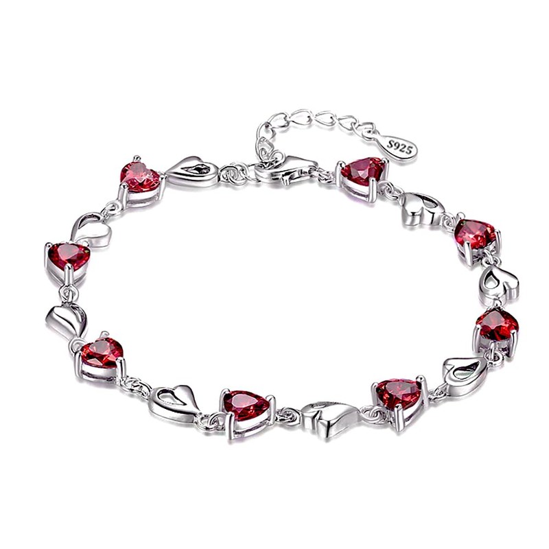 Baobei Kaguyo Silver Bracelets for Women, Crystal Bracelets, Clear Amethyst Pink Red Blue CZ Heart Friendship Bracelet for Women and Girls, Birthday Gift, Sterling Silver, Cubic Zirconia