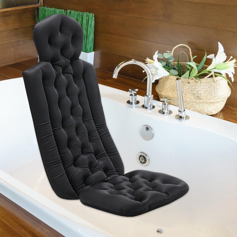 Baoblaze Bath Pillow Portable Powerful Suction Cups Bathing Pad Breathable SPA Pillow with Headrest Cushion for Bathroom Bathing Gifts, Black