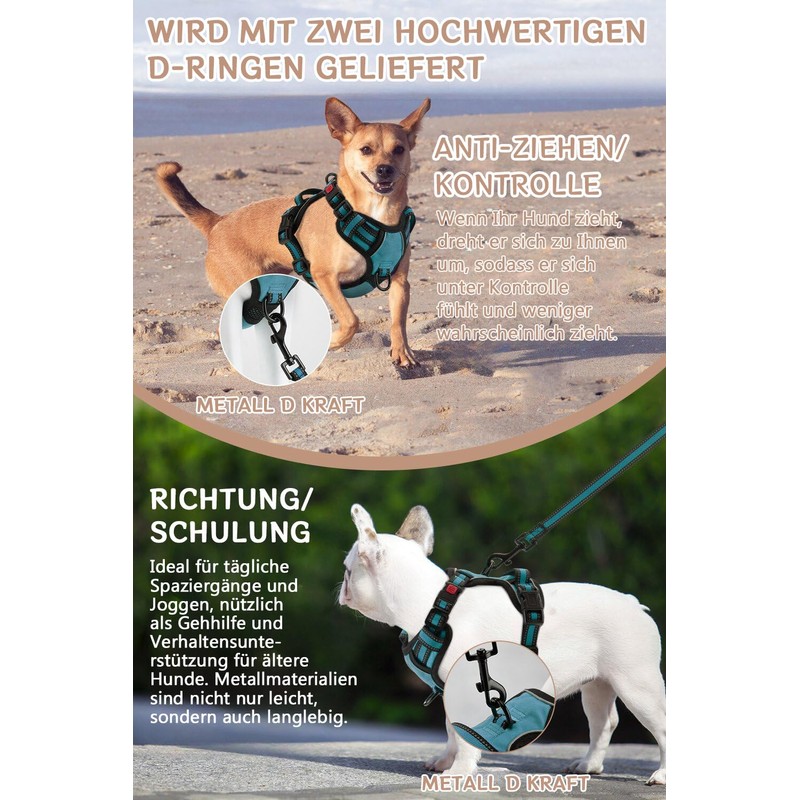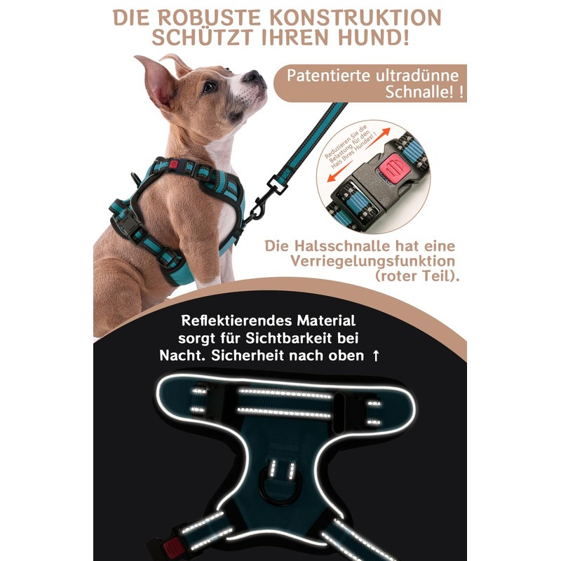 - Design: Supported by the back and chest, evenly distributed over the dog's body, with minimal strain on the dog. There is a buckle around the neck, which not only eliminates the need to go through the dog's head, but also improves safety. Can improve the anti-stretch function and stretching habits. Specially designed for skin protection and ventilation of dogs.
