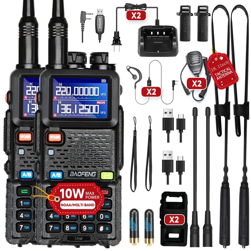 BAOFENG 5RM 10W Ham Radios Handheld Handheld UV-5RM Dual Band USB-C Charging Cable 2500MAh Battery 2PCS (Black)