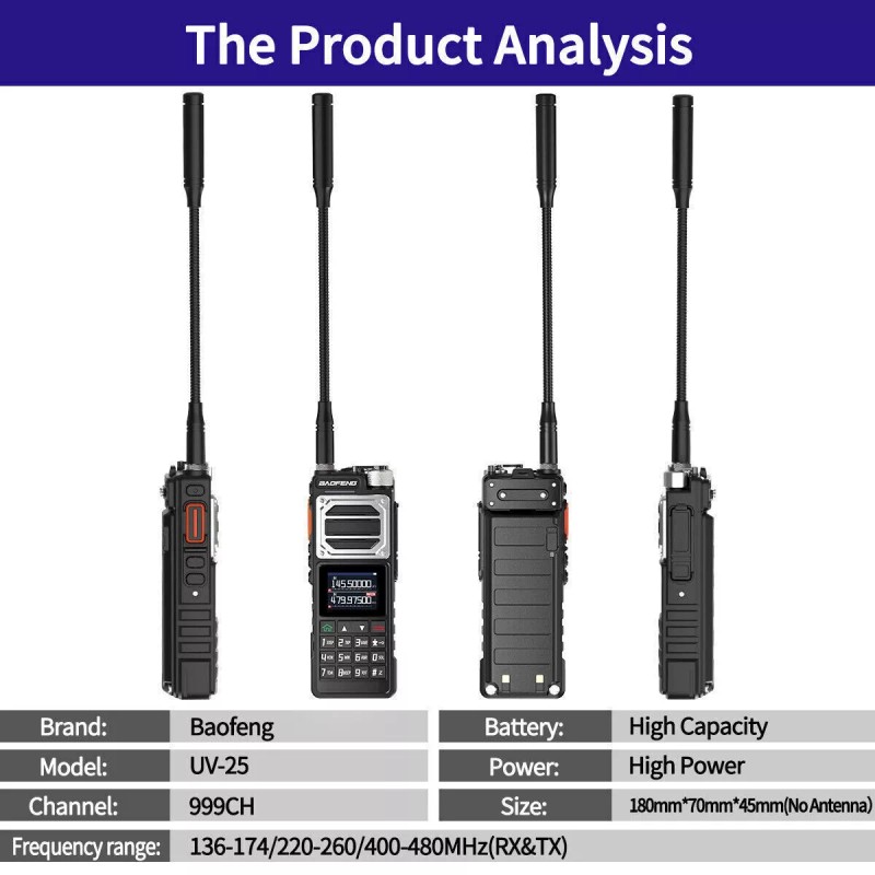 Baofeng UV25 Walkie Talkies Long Range Tri-power Two Way Radio+Bluetoot