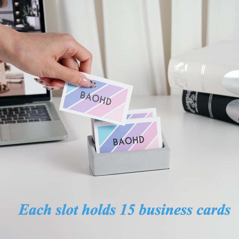 BAOHD Concrete Business Card Holder for Desk, 2 Slot Desktop Horizontal Business Card Display Stand Organizer for Office School Home, Gray
