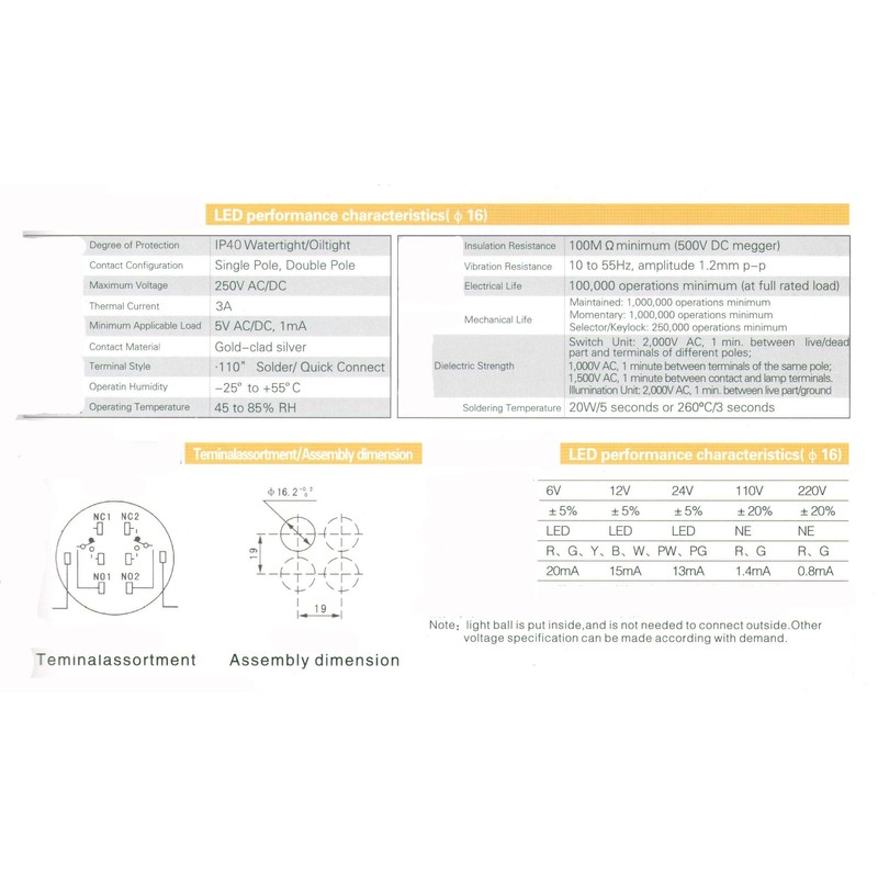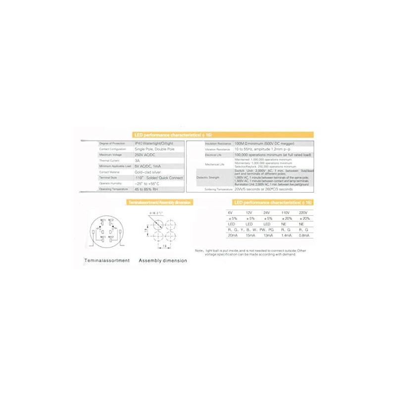 - Working Voltage: 5A / 250VAC; Light Voltage: DC 12V