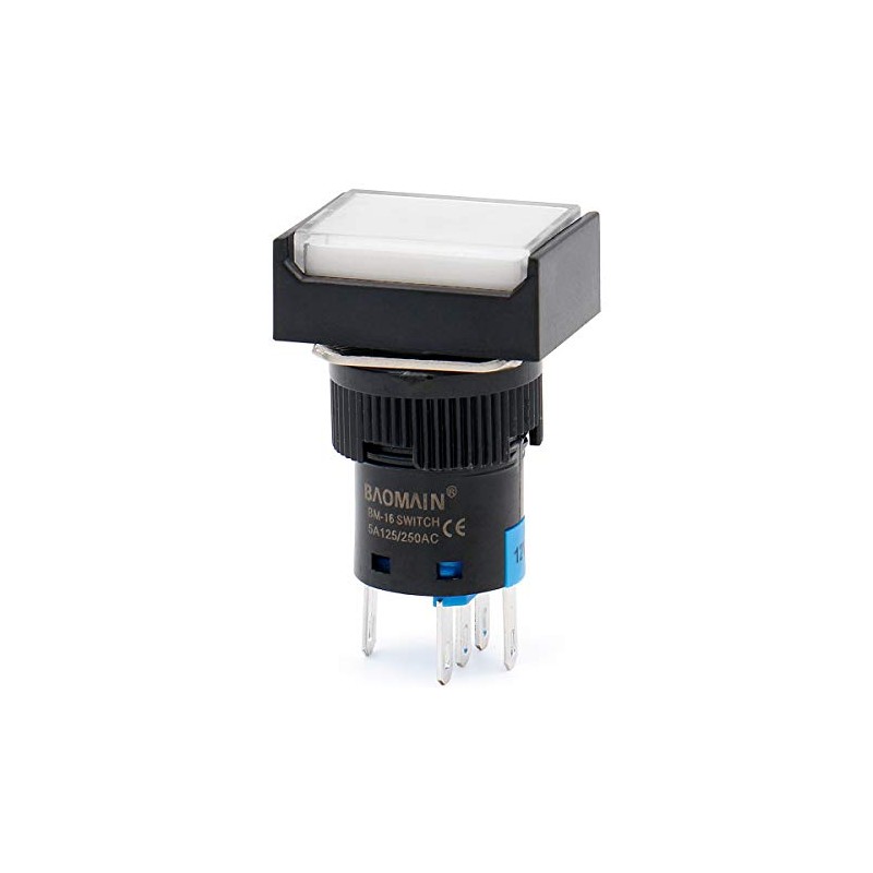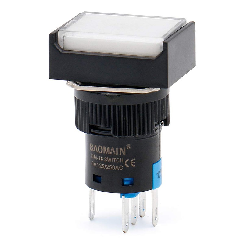 Baomain 16mm Push Button Switch Momentary Rectangular Cap LED Lamp White Light DC 12V SPDT 5 Pin Pack of 5