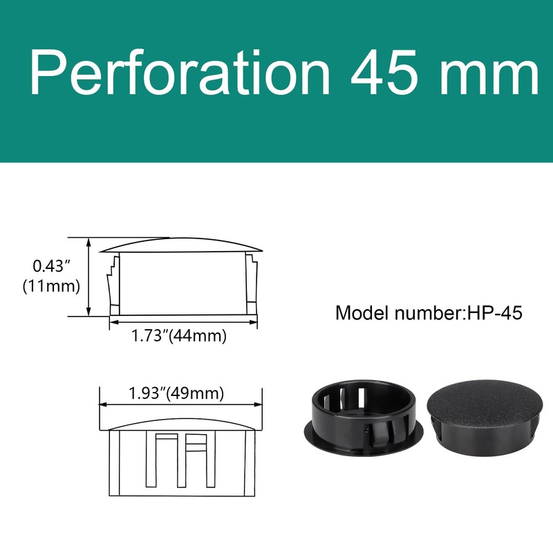 Baomain Plastic Locking Hole Plugs Panel Hole Diameter 1.75" (45mm) Black 25 Pack
