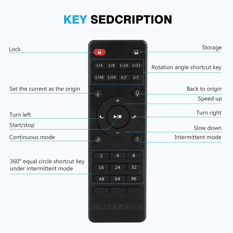 - ROTATE ANY ANGLE YOUR WANT - The motorized turntable has a remote control (within the range of 16 feet), which allows it to angle at 0.1-360 degree rotation, one rotation with 15°, 45°, 90° and 180° pauses. You can also turn it clockwise or counterclockwise, and do continuous rotation or intermittent rotation. Different increments help you take photos of your subject from every angle.