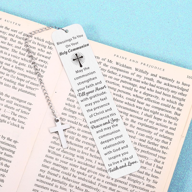 - 【1st Communion Gifts Easter Basket Stuffers for Toddlers Kids】Today, my child receives the sacred body and blood of Christ, a moment of profound reverence! This religious bookmark is an exquisite gift for church members, daughter, son, girlfriend, granddaughter, grandson, teenagers, family members. Reminds him/her of God's promises gift, godfather gift from godchild., baby dedication gifts for boys, silver cross necklaces for women, things for teen girl, inspirational gift for women.