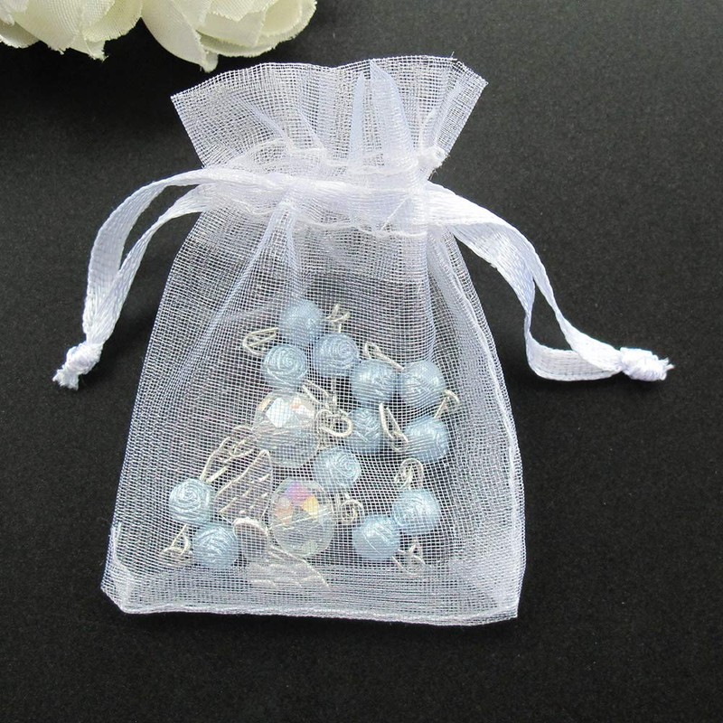 - 12 PCS Adorable blue mini Angel rosaries are handmade, comes in organza gift bags.