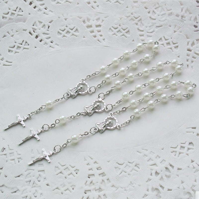 Baptism Favors (24PCS) Mini Rosaries simulated pearl Beads with Sivler Plated Accents - Reduerdos Mini rosarios/Recuerditos De Bautismo - First Holy Communion - Wedding