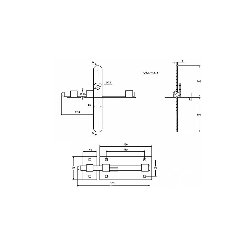 Bar bolt, door bolt, gate bolt, 150/16 on both sides, galvanized.