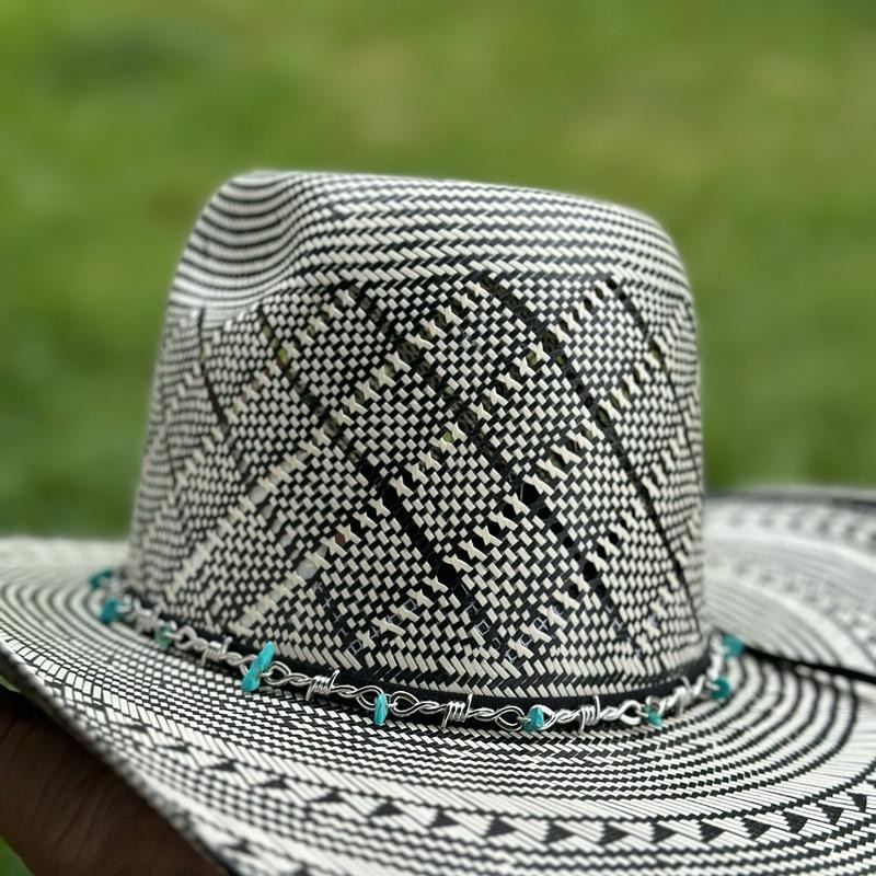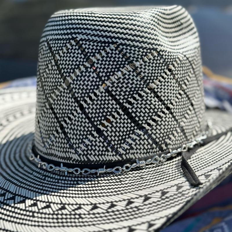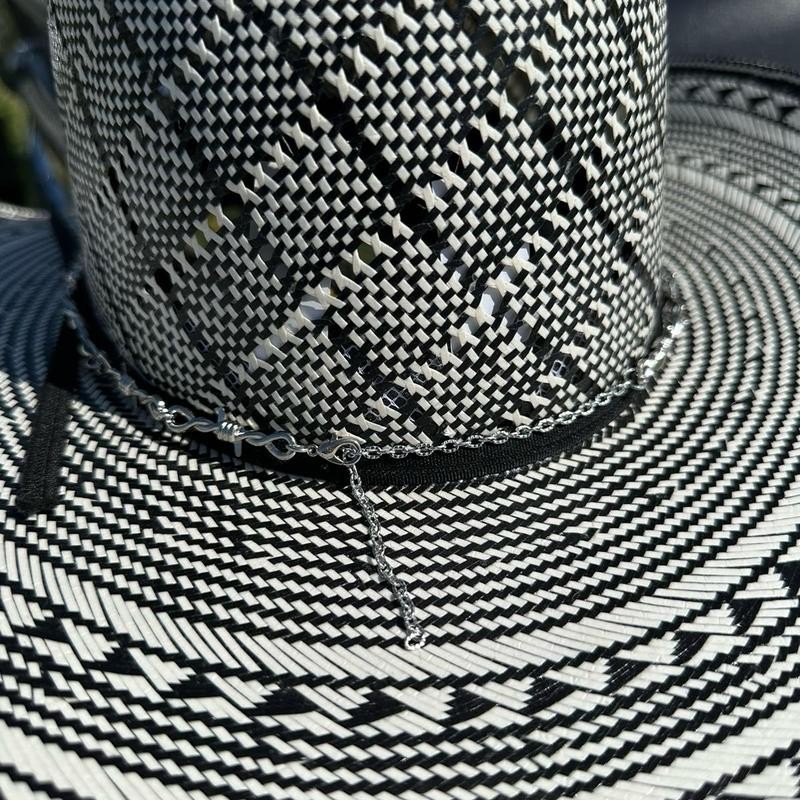 Barbed wire portion is 21” long. There is an extra 5” of adjustment chain Total length is 26” long The hat pictured is a size 7 1/8 for reference.