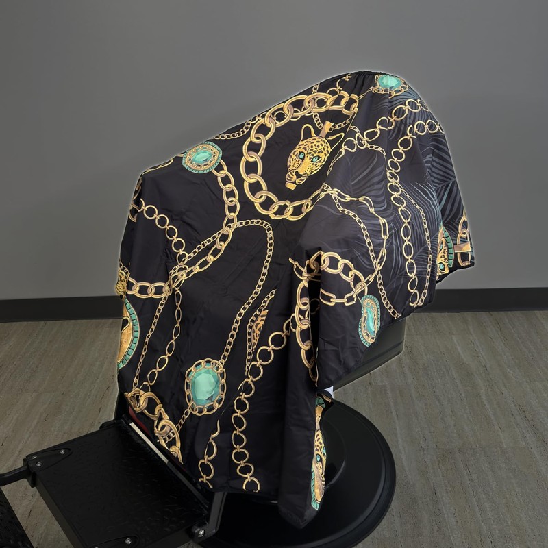 Barber Flow Leopard Chain Hair Cutting Barber Cape | Adjustable Elastic Neckband Closure | Large King Size