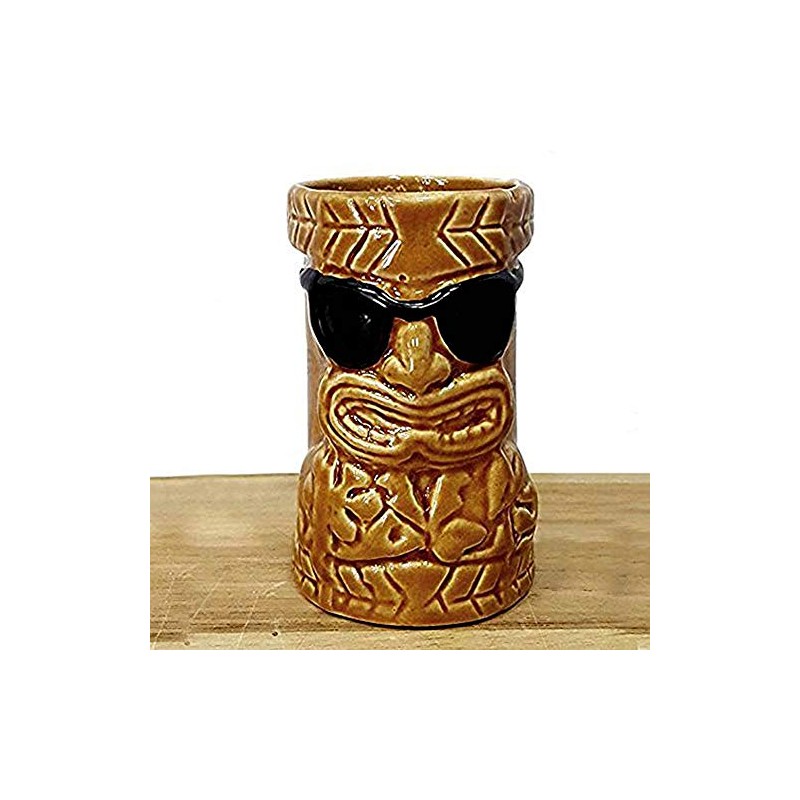 We just know your next party is cool enough to merit serving drinks or shooters out of our" Miniman" Tiki Mug. This ceramic man with his sunglasses and Aloha shirt is the perfect size for shooters or sampling different rum drinks. Spice up your tiki bar a bit and use this as a decorative holder for your Bamboo Cocktail Picks, Sip Straws, or any other tropical themed Stirrers. Please note: This ceramic Tiki is hand painted and fired. Slight color variations are possible.