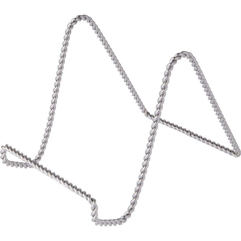 **Bard's Twisted Silver-toned Wire Stand, 6" H x 5.5" W x 8" D DISPLAY SIZE:** Approximately 6" (height) x 5" (width) x 2" (depth) (these are the measurements of the stand fully open) Keep in mind the overall size and weight of your item when choosing a display stand. Our stands can help create stable, sturdy, and secure placement and showcasing of your items.