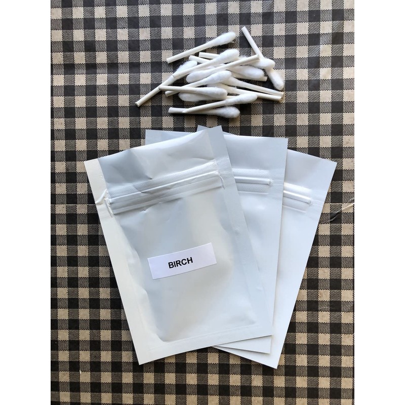 - Pre-scented swabs are packaged in odor proof Mylar zip lock bags
