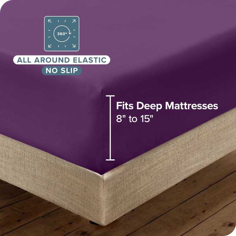 - EASY FIT 360-DEGREE ELASTIC: Our deep pocket fitted sheets fit mattresses up to 15 inches deep, which is a universal size for most mattresses. All-around elastic provides a firm fit around your mattress to keep everything in place for restless sleepers. Deep pockets will still stay snug on mattresses less than 15 inches.