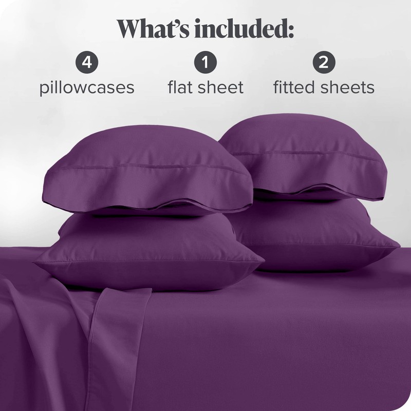 Bare Home Hotel Luxury Split King Sheet Set, Extra Soft - 7 Piece Set - Deep Pockets - Easy Fit - Cooling & Breathable - Wrinkle, Fade, Stain Resistant - Set Includes 4 Pillowcases (Split King, Plum)