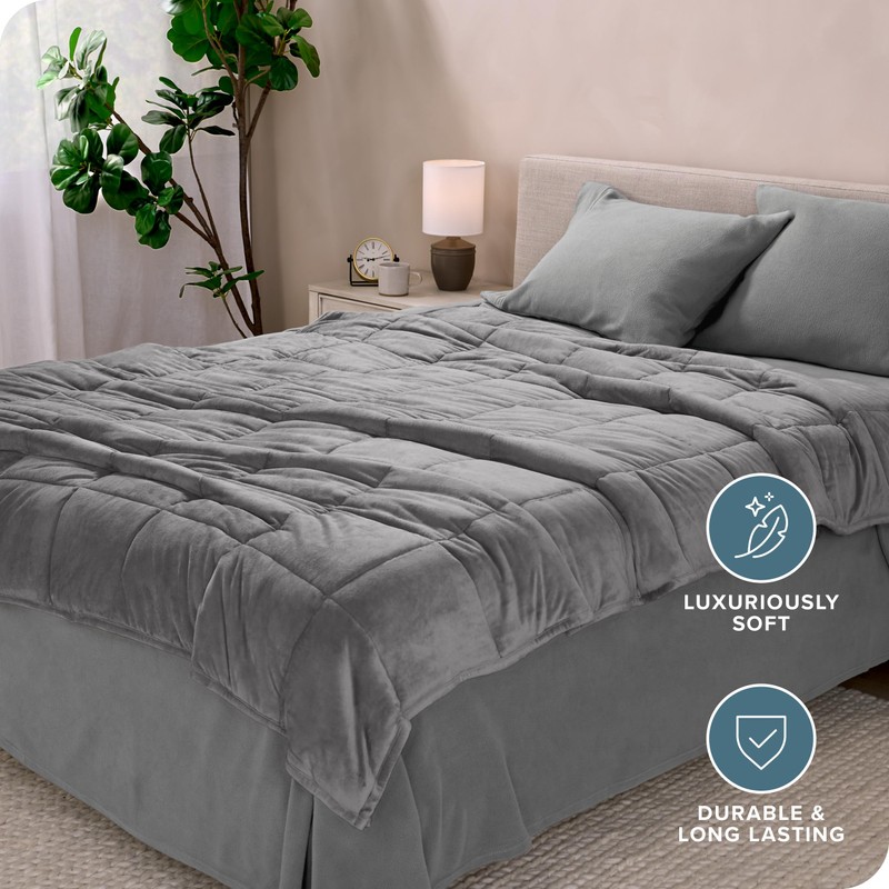 Bare Home Weighted Blanket King Size 25lb (80" x 87") for Adults - Minky Fleece - Premium Heavy Blanket Nontoxic Glass Beads (Light Grey, 80"x87")