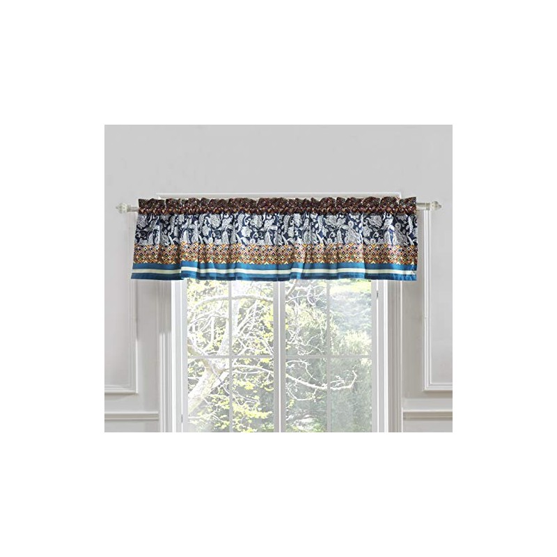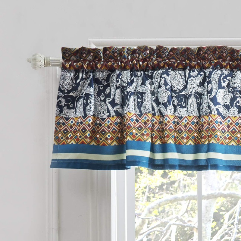 - This eclectic 84-inch wide valance has a 16-inch drop length, plus a 2-inch decorative header