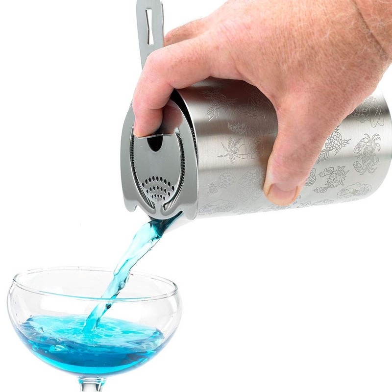 - BARWARE ESSENTIAL: Easily prepare your favorite cocktail in this tin, featuring a unique etched design; perfect for any bar setup