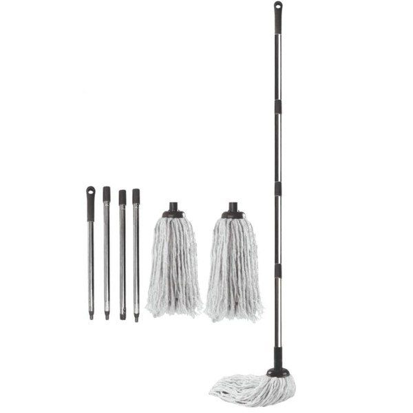 - CONVINIENT AND ERGONOMIC DESIGN: With its detachable handle and mop head, this looped-end string wet mop has an ergonomic design that makes it easy to use for all cleaning tasks. Its length is adjustable, and changing the mop head is simple at any moment.