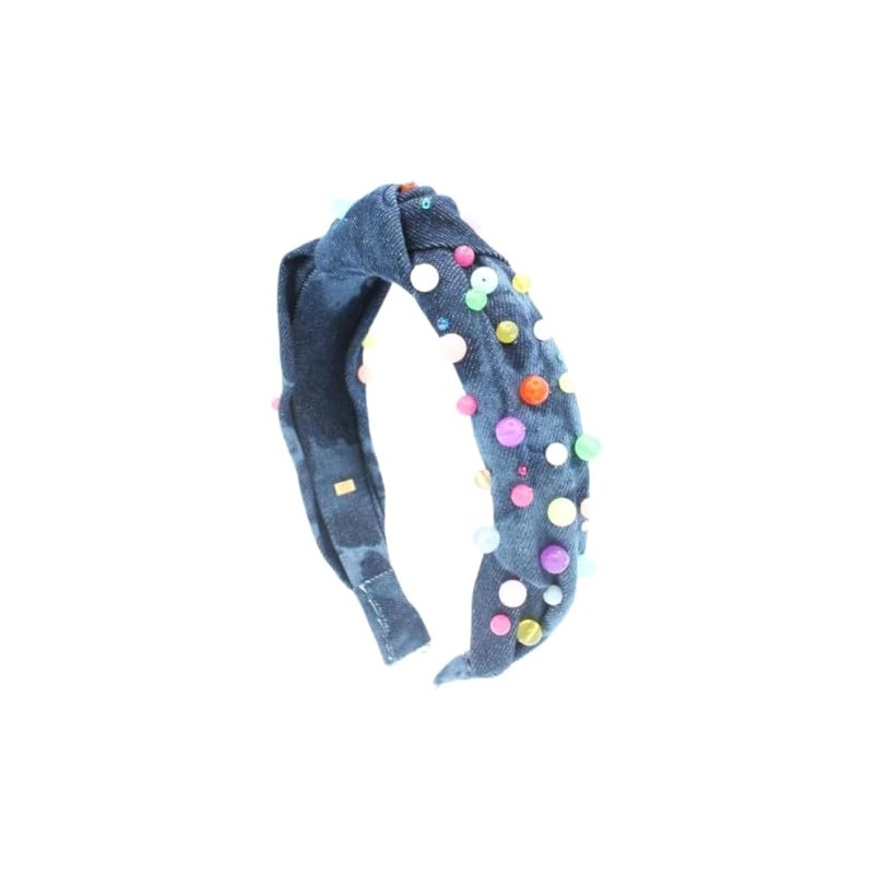 Bari Lynn Light Denim colorful Pearlized Knot Headband with Crystals 1 piece