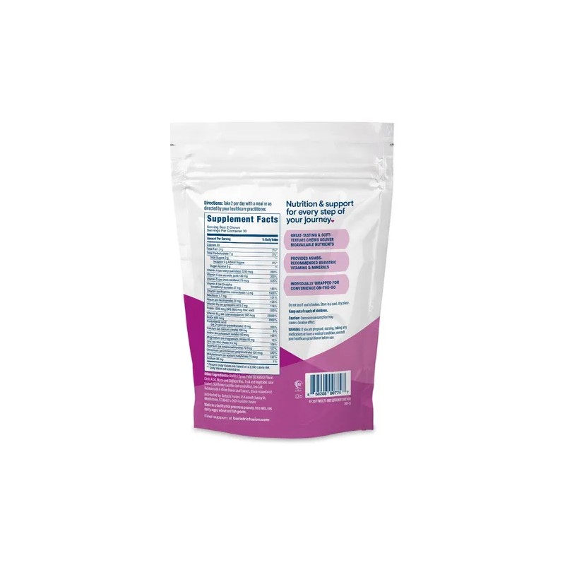 Bariatric Fusion® Multivitamin Mixed Berry 60 Soft Chews, suplementos diseñados para personas que han pasado por cirugías bariátricas, como el bypass gástrico, la manga gástrica y otros procedimientos de pérdida de peso.